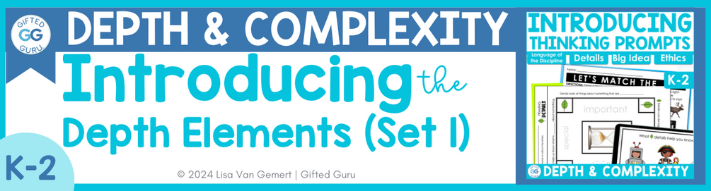 Want to introduce your Kindergarten, First Grade, or Second Grade students to the Depth and Complexity thinking prompts of Language of the Discipline, Details, Big Idea, and Ethics? If you have been wanting to use the Depth and Complexity with your younger students and just weren't sure where to start, or if you just love Depth and Complexity and can't get enough, this resource offers low-prep and no-prep actvitivities perfect for K-2 students.
